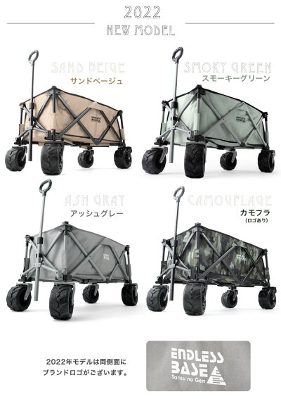 ※動画の迷彩柄は旧モデルとなります ▼コーディネートに使用したアイテムはこちら▼ ヘキサタープ ワンタッチテント 4P ハンモック フォールディングチェア レジャーテーブルセット フォールディング ラック ▼オフロードシリーズ!▼ 容量 46L 容量 170L 仕様サイズ 外寸:幅56×奥行105×高さ63〜91cm (収納時:幅25×奥行41×高さ74cm) 容量:約100L【スタッフわんちゃんのおすすめポイント!】 ・アウトドアやスポーツなどでマルチに活躍 ・幅10cm大型タイヤなので悪路でも安定性抜群 ・荷物をたくさん運べる容量100L ・邪魔にならない伸縮式キャリーバー ・持ち運びにも便利な折り畳み式 ・フレームの傷が目立ちにくいハンマートーン加工 ・コンパクトに折り畳み可能 ・折り畳んだ状態で自立OK ・すっきり収納出来る同色カバー付き重量 約12kg 走行耐荷重 約100kg(静止耐荷重:約150kg) 材質 フレーム : スチール、ポリエチレン タイヤ:PVC樹脂生地 : ポリエステル底板 : PPカラー <ロゴ無し> ボタニカルベージュ <ロゴ有り> スモーキーグリーン、サンドベージュ アッシュグレー、カモフラ梱包サイズ 幅29x奥行35x高さ74cm生産国中国送料【送料無料(沖縄県・離島は送料別途)】※沖縄県・離島の場合はお問い合わせください。