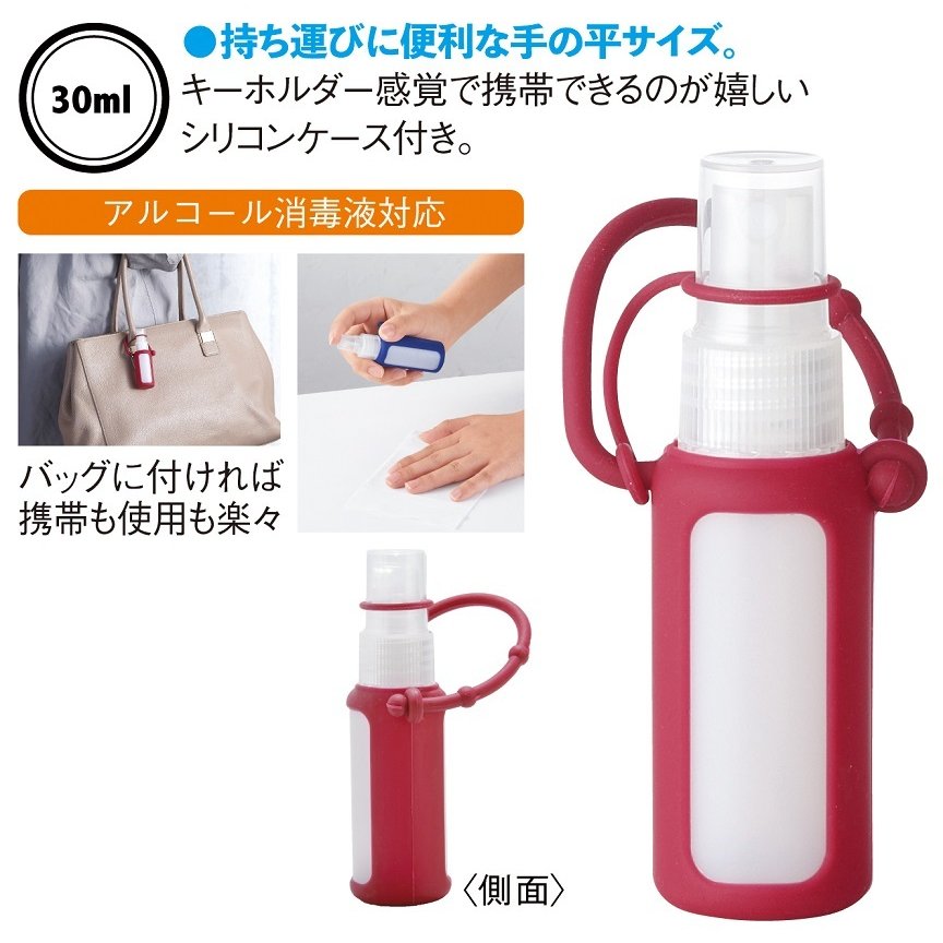 シリコンケース付きスプレーボトル30ml ギフト 景品 贈答 粗品 ノベルティ 販促品 プチギフト ★ロット割れ不可 10個以上でご注文願います257個以上で送料無料(北海道・沖縄・離島は別途)