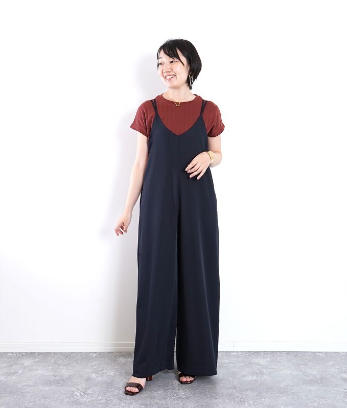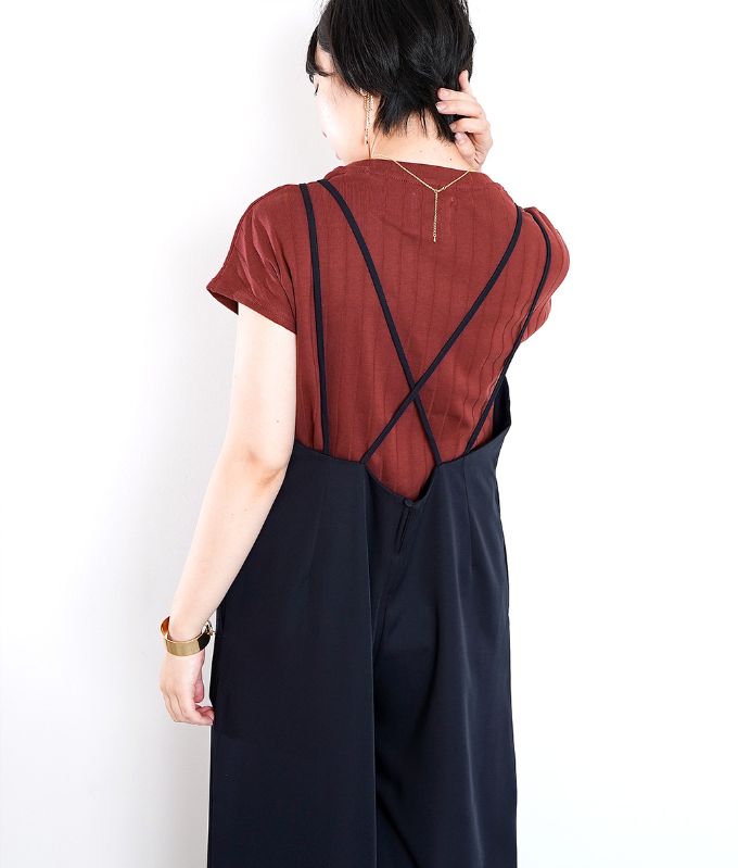 「cawaii french」バッククロスが魅力のワイドキャミソールサロペット【ブラック】
