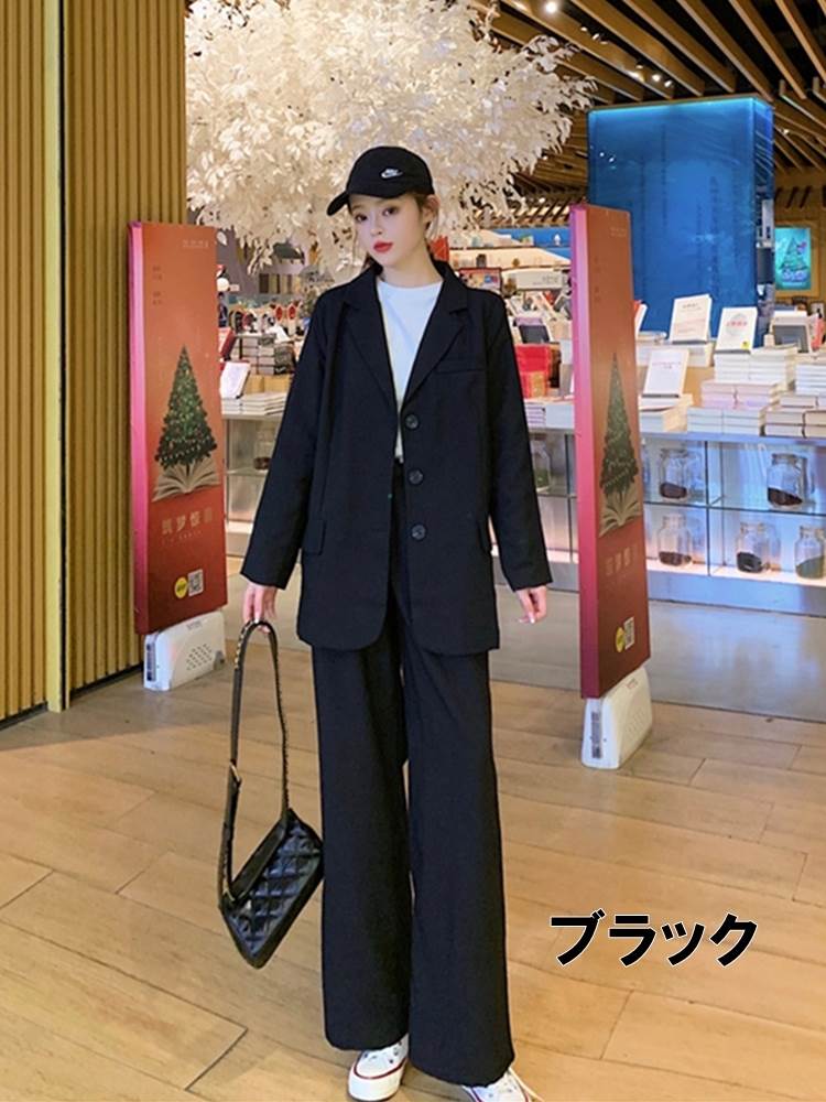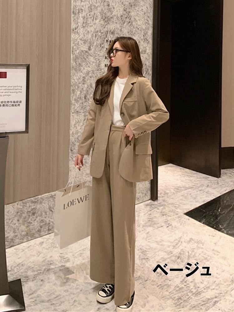 2色 セットアップ スーツ フォーマル パンツ スーツ タック ブラック ベージュ レディース べっ甲ボタン かっこいい ジャケット 上下セット シンプル 長袖 大人可愛い きれいめ シンプル 上品 おしゃれ 大人女子 こなれ感 クール ビジネス フォーマル パンツドレス 春 秋 1