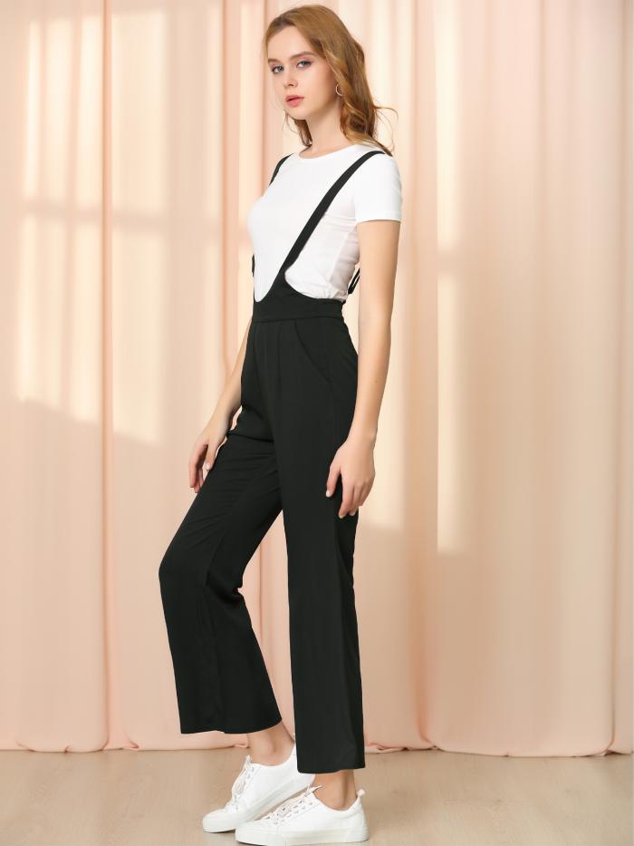 ソウテン Allegra K ジャンプスーツ オーバーオール 調整ストラップ レディース ブラック M