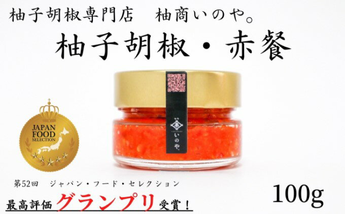 柚子胡椒「赤餐」100g【配送不可:離島】 【瓶詰・調味料・ゆず胡椒】 【配送不可:離島】鮮やかな朱色の「赤餐」「病みつきになる味わい」を目指して完成させたこの赤ゆず胡椒は、青唐辛子が熟れることで色を変えた赤唐辛子、「いのや。