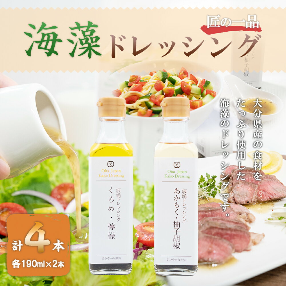 【ふるさと納税】海藻ドレッシング 計4本セット (あかもく・柚子胡椒) (くろめ・檸檬) 各190ml×2本 詰め合わせ 詰合せ はちみつ かぼす果汁 レモン果汁 あかもく 柚子胡椒 くろめ 檸檬 国内産 九州産 大分県産 調味料 ドレッシング ギフト 送料無料