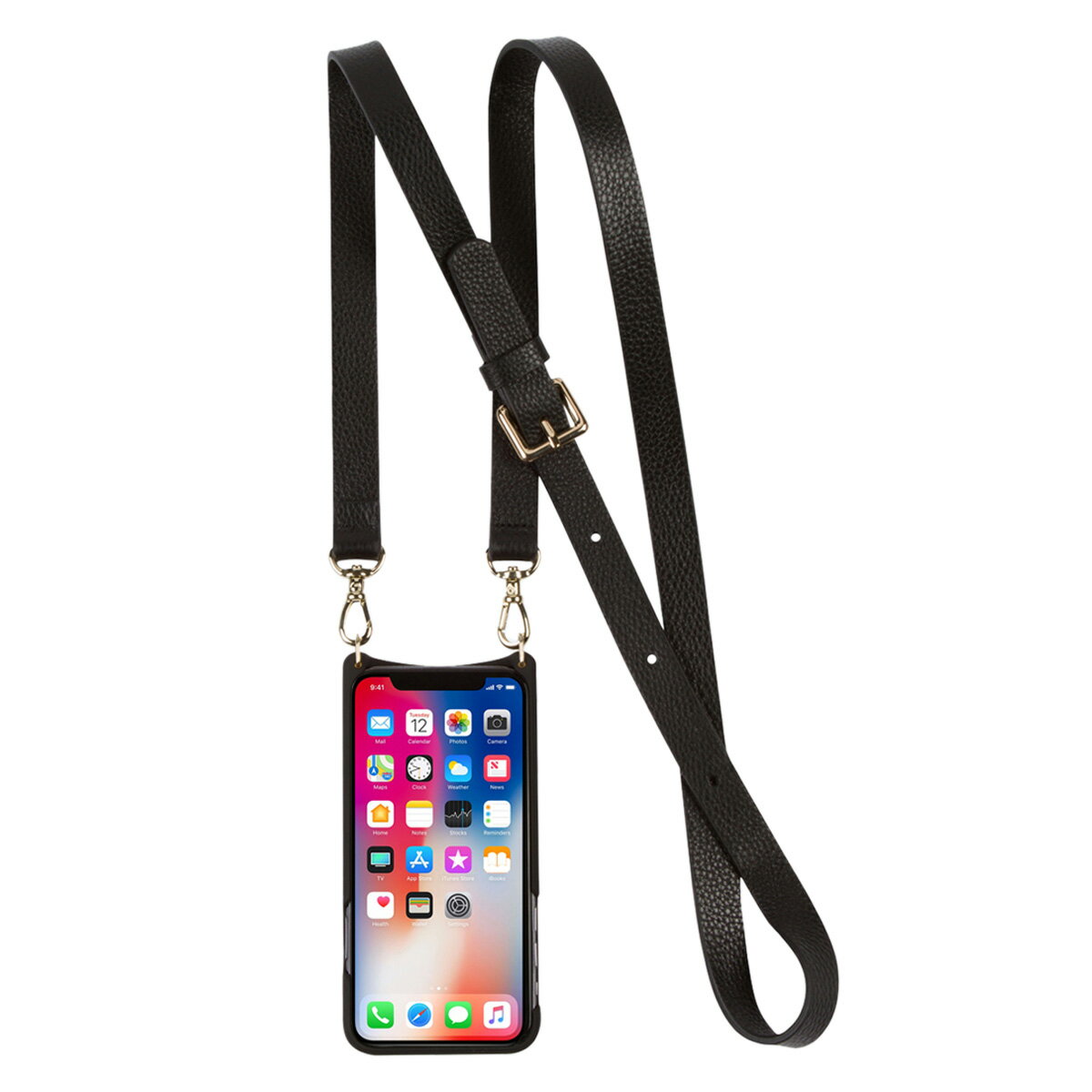 肩から斜めがけが出来るストラップの付いたiPhoneケースです。