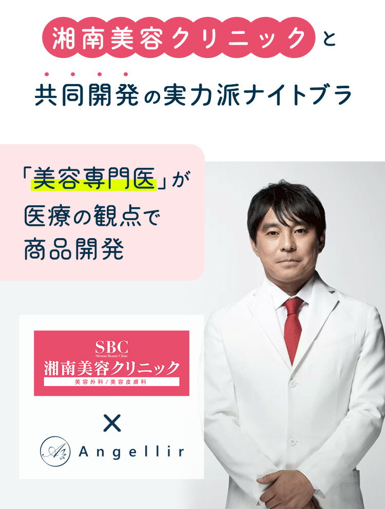 Angellirの売れ筋No.1!累計販売数300万枚突破の大人気ナイトブラ ノンワイヤーのフロントホック構造で、バストをしっかりサポート。