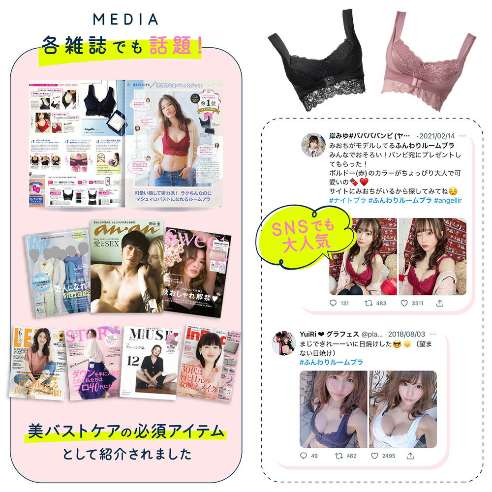 8/30~9/1P5倍&クーポン【店舗人気NO.1】ナイトブラ Angellir ふんわりルームブラ 谷間 ホールド感 フロントホック 盛れる 美胸 ノンワイヤー かわいい レース 離れ胸 補正 補整 下着 バストアップ 育乳 大きいサイズ 綿 おすすめ シーオーメディカル アンジェリール 公式