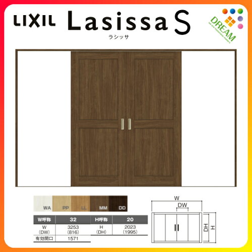 室内引き戸 Vレール方式 2枚建 引き分け戸 ラシッサS LWA ケーシング付枠 3220 W3220×H2023mm リクシル LIXIL トステム TOSTEM 室内ドア 室内引戸 引き戸 引分け戸 建材 室内 建具 交換 リフォーム DIY ドリーム