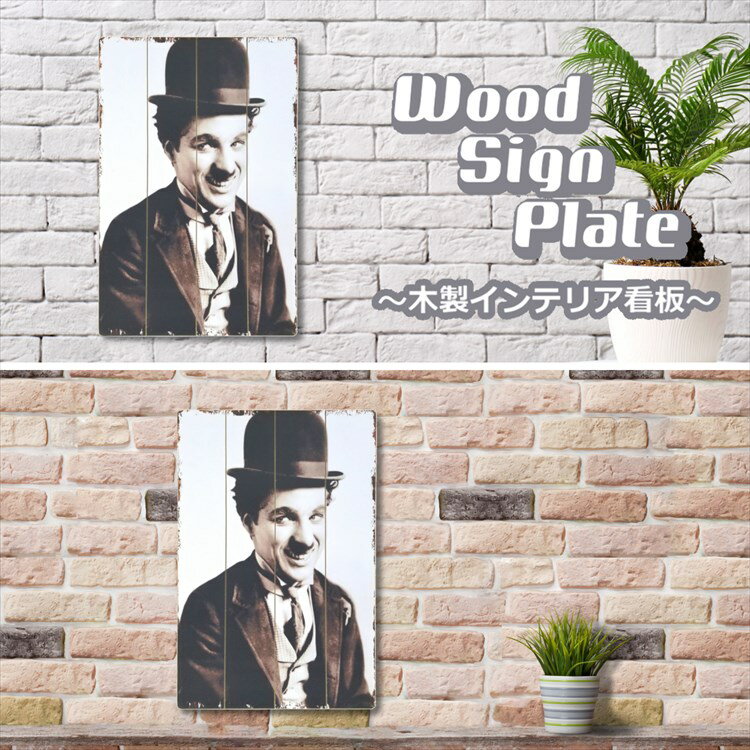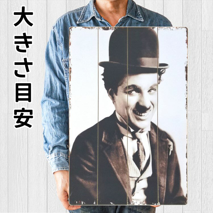 チャップリン グッズ ポスター木製看板60 男前インテリア ポスター アートパネル 絵画プレート 喜劇の王様 喜劇王 コメディアン スマイル ウッドパネル おしゃれ 白黒 アンティーク調 大きい 特大 40cm 60cm 約A2サイズ